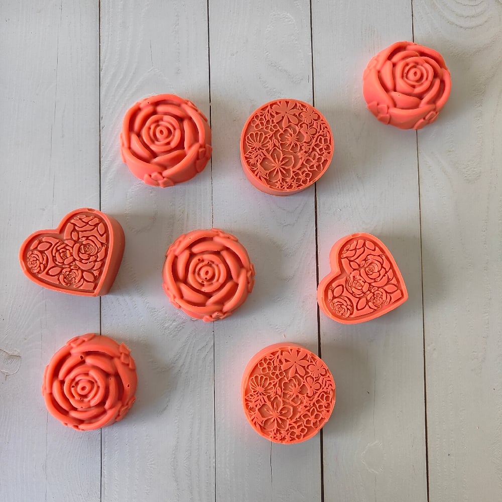 A romantic floral soap shaped with hearts/ roses/ garden flowers, designed to celebrate love, self-care, and sweet moments. Perfect for gifting on Valentine’s Day.